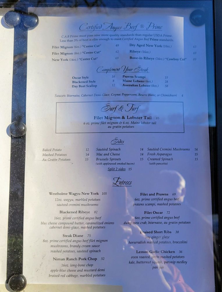 oz. certified angus beef filet mignon, oz. Maine lobster tail, au gratin potatoes